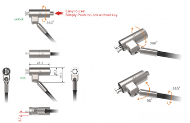 Port nano security cable lock